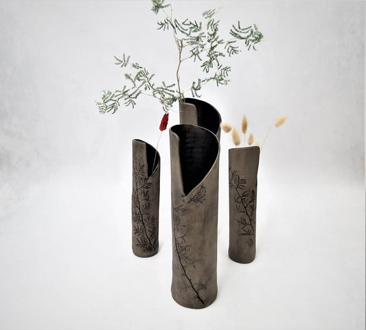 אגרטל פרחים כפרי אפור ושחור לבחירה כארגרטל יחיד או כזוג אגרטלים