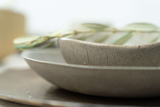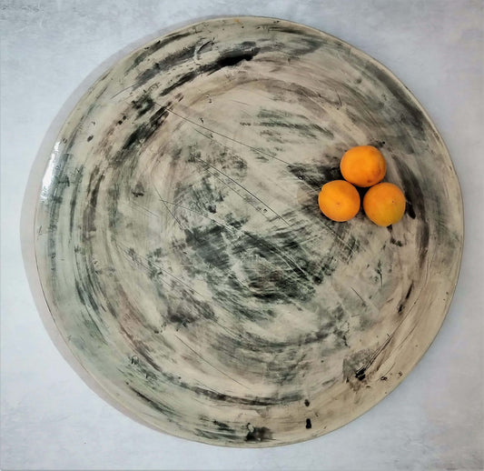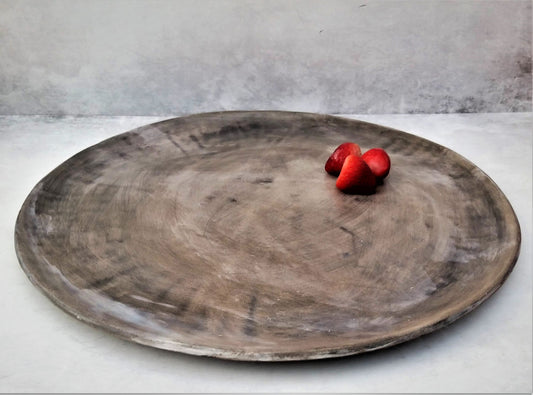 צלחת הגשה שטוחה בעבודת יד – אפור בהיר או כהה