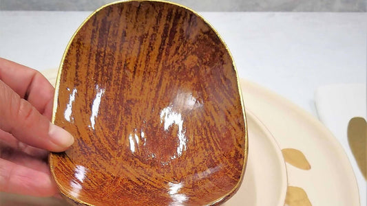 סט קרמיקה בעבודת יד – שמנת, זהב וקרמל | 3 חלקים