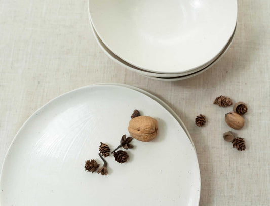 סט קרמיקה לבן בעבודת יד – קערה + צלחת שטוחה