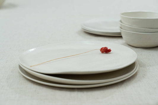 צלחת קרמיקה לבנה בעבודת יד | צלחת מנה עיקרית בסגנון כפרי מודרני