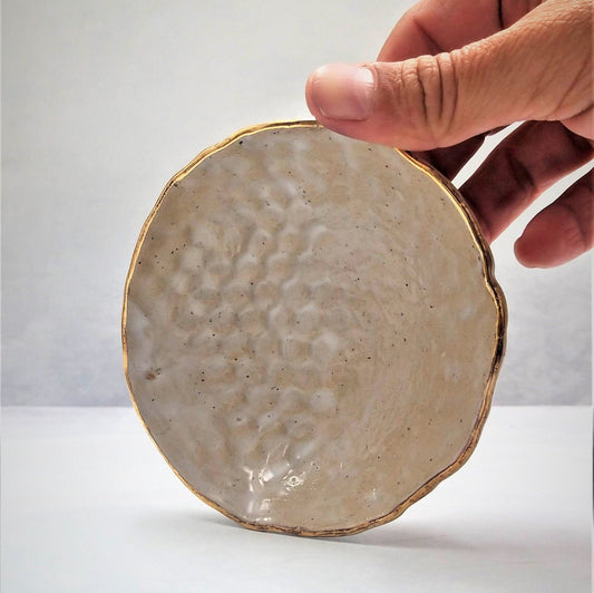 קערה קטנה בגוון בז' מנוקד עם זהב אמיתי