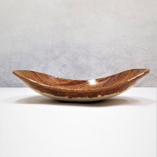 צלחות אובליות קרמל מוזהב להגשה בעבודת יד