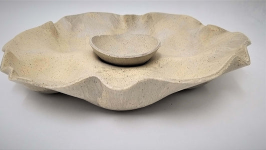 מגש קרמיקה עגול מחולק בגווני חול מדבר