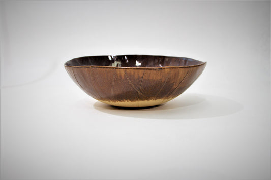 קערה מקרמיקה עבודת יד בגווני חום כחול טורקיז