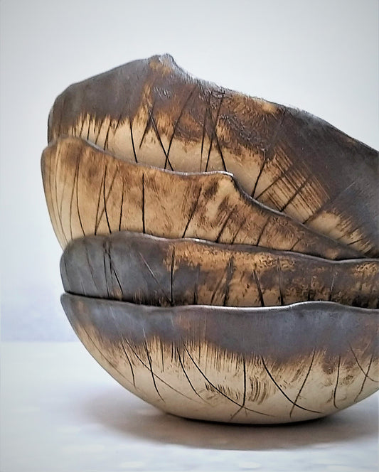 סט קרמיקה בעבודת יד – שמנת, זהב וקרמל | 3 חלקים