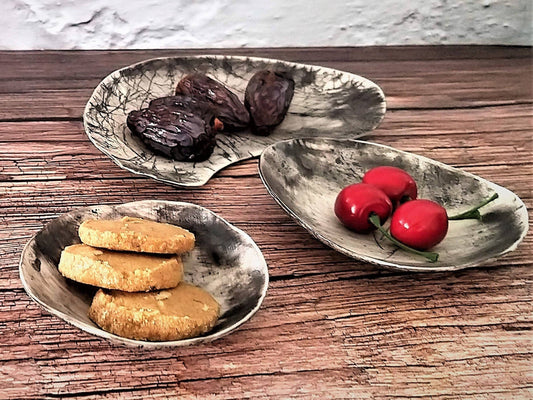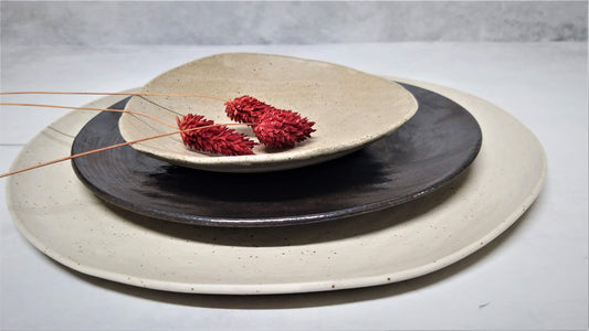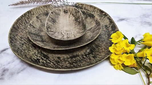 סט 3 צלחות מהודר ויוקרתי עשוי חימר בעבודת יד בעיצוב מודרני מחוספס