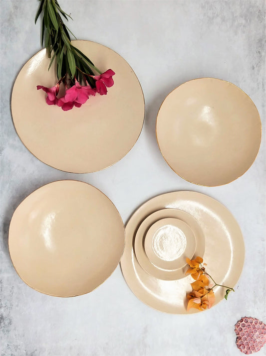 סט 4 צלחות בצבע שמנת עם גימור זהב 24 קראט