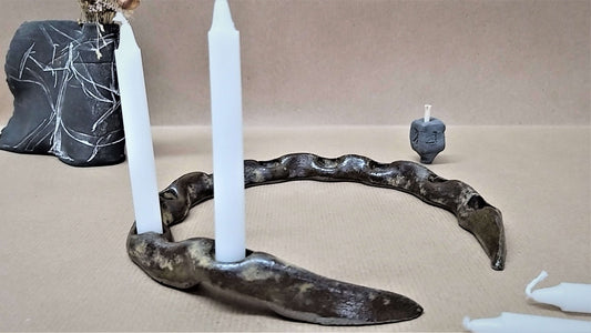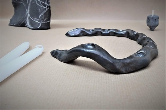 חנוכייה מיוחדת בעבודת יד מקרמיקה במראה מתכתי נדיר
