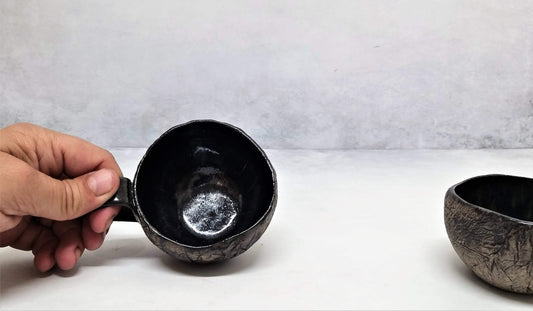 ספל קרמיקה ותחתית בצבע שחור אפור