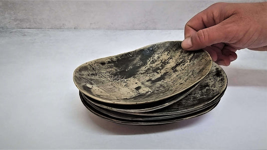 סט 4 צלחות אובליות מקרמיקה עבודת יד