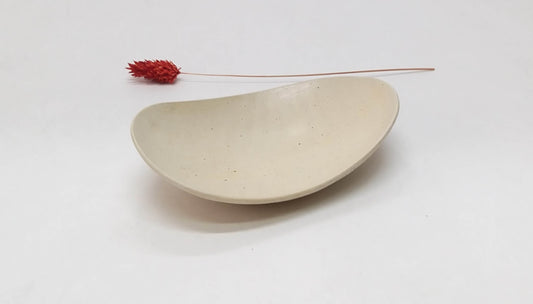 סט צלחות אובליות בגוון לבן שמנת מקרמיקה עבודת יד